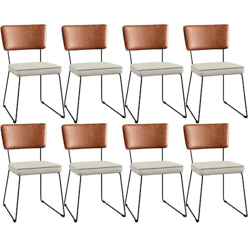 O espetáculo que é o Kit 08 Cadeiras Decorativas Sala Jantar Allana L02 Couríssimo Camel Linho Champagne - Lyam Decor vem para agregar ainda mais valor na decoração da sua casa. Sua estrutura em aço remete-nos ao estilo industrial que surgiu em Nova York no século XX, já o assento e encosto estofados trazem equilíbrio e conforto criando a combinação perfeita para o ambiente.