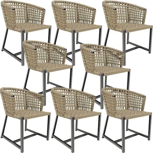 Kit 08 Cadeiras Decorativas Para área Gourmet Cozinha Corda Náutica Belize D04 Bege - Lyam Decor