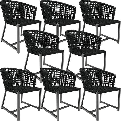 Kit 08 Cadeiras Decorativas Para área Gourmet Cozinha Corda Náutica Belize D04 Preto - Lyam Decor