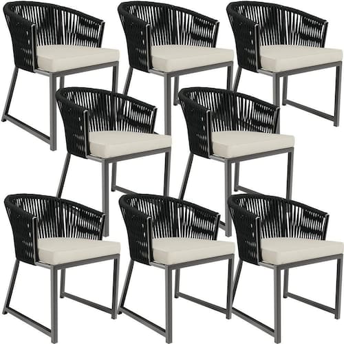 Kit 08 Cadeiras Decorativas Para área Gourmet Cozinha Corda Náutica Bethari D04 Preto - Lyam Decor