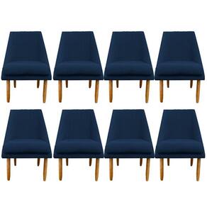Kit 08 Cadeiras Para Sala De Jantar Ana Pés Palito Suede Azul Marinho - D'classe Decor