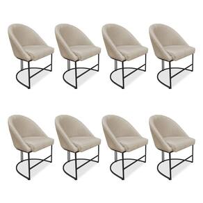 Kit 08 Cadeiras Poltrona De Jantar Bela Suede Bege Base Metálica Industrial Preto - Pallazio