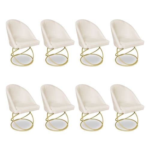 Kit 08 Cadeiras Poltrona de Jantar Bela Suede Grafite Base Metálica Luxo Dourado - Pallazio