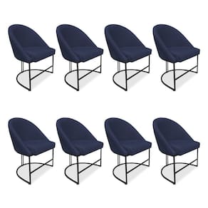 Kit 08 Cadeiras Poltrona De Jantar Bela Veludo Azul Marinho Base Metálica Industrial Preto - Pallazio