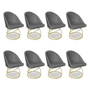 Kit 08 Cadeiras Poltrona de Jantar Bela Veludo Grafite Base Metálica Luxo Dourado - Pallazio