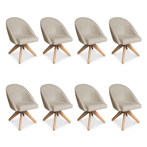 Kit 08 Poltronas Cadeira Giratória Bela Suede Bege Base De Madeira - Pallazio