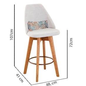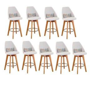 Kit 09 Banquetas Alta Maya Giratória Com Encosto Linho Bege Claro e Almofada Folhas - Aurora Line - Blush