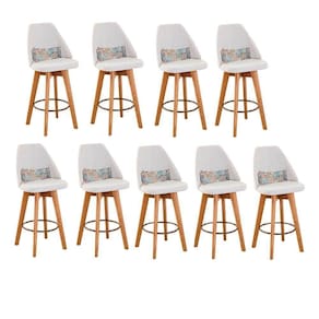 Kit 09 Banquetas Alta Maya Giratória Com Encosto Linho Bege Claro E Almofada Folhas - Gat Magazine Banqueta Maya Giratória - GAT MAGAZINE A Banqueta Maya possui assento e pés em madeira eucalipto com sistema giratório! Os pés contam com um reforço que proporciona um suporte de peso de até 120 Kgs.O assento é revestido com espuma D-23. Além de bonita e charmosa, vai trazer para seu ambiente elegância e proporcionará conforto para sua família e amigos nos momentos de lazer.