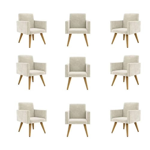 Kit 09 Cadeiras Poltronas Decorativa - Escritório - Recepção Cor:bege