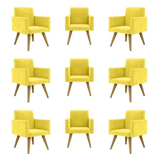 Kit 09 Poltronas Nina Decorativa Para Recepção Balaqui Decor Cor:amarelo