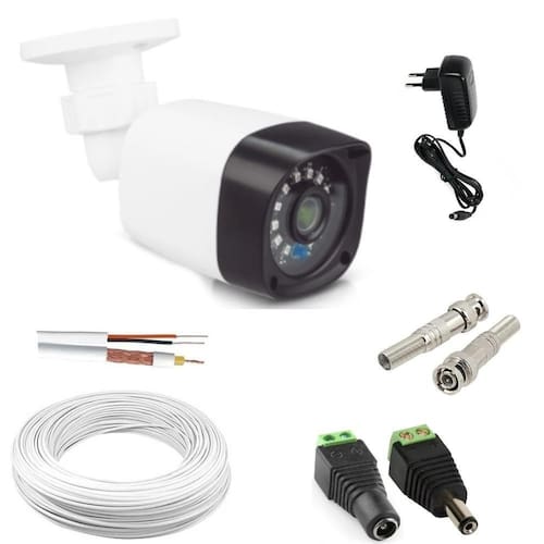 Itens inclusos no kit: 01- câmera de segurança ahd-1080p - lente 3.6mm - 2mp 01- rolo com 50 metros de cabo coaxial bipolar 80% malha. 01- fonte de alimentação bivolt 12v-2a 02- conectores bnc macho com mola. 01- conector plug p4 macho. 01- conector plug p4 fêmea.