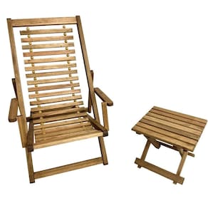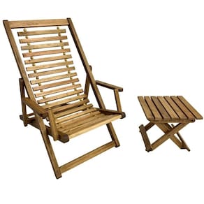 Kit 1 Espreguiçadeira de Madeira Maju com Mesinha/Banquinho Multiuso Madeiral -