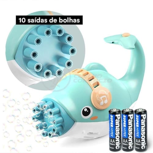 Kit 1 Golfinho Bolha Sabão Criança Infantil+ 3 Pilha Azul 9
