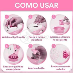 Kit 1 Golfinho Bolha Sabão Criança Infantil+ 3 Pilha AA Rosa A Diversão infinita que seus filhos precisam Não importa, adultos ou crianças, eles sempre ficam animados quando veem bolhas.