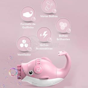 Kit 1 Golfinho Bolha Sabão Criança Infantil+ 3 Pilha Rosa 5