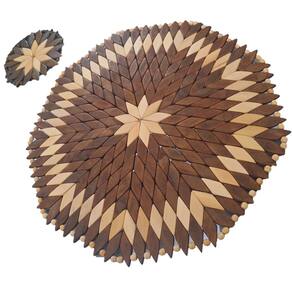 Este Kit composto por 1 Lugar (Jogo) Americano + 1 Porta Copos Redondos Marrom-Marfim, é uma peça única e COLORIDA, feita por artesãos do Estado do Ceará, Brasil. Ele é confeccionado a partir de madeira de alta qualidade, garantindo durabilidade e resistência ao uso diário. As pecinhas de madeira envernizadas acrescentam um toque extra de elegância e sofisticação ao produto.