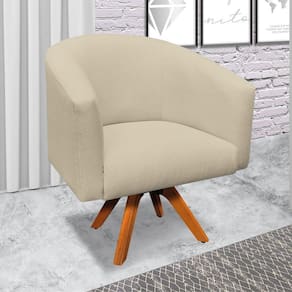 Kit 01 Namoradeira 02 Lugares e 01 Poltrona Giratória Stella Linho Areia A27 Base Madeira MM30 - D'Rossi