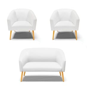 A Namoradeira Stella além de linda vem com um design moderno. Ideal para comportar duas pessoas. Projetada para fornecer segurança, bem-estar e aconchego para quem se assentar. Com um acabamento rico em detalhes, o tecido em Corino no tom Branco, no seu encosto e no assento é composta por espuma mais densa D-23. Os pés são em palito de madeira castanho, tornando o móvel ainda mais resistente. Ela combina com qualquer decoração. Fala aí se não é uma ótima oportunidade!! Escolha seu kit 01 Namoradeira 02 lugares e 02 Poltronas e crie uma decoração romântica, perfeita para casais apaixonados desfrutarem um tempo juntos.