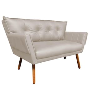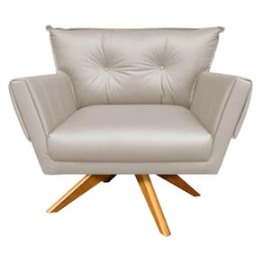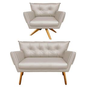 Kit 01 Namoradeira e 01 Poltrona Giratória Anitta Corino Bege Base de Madeira MA30 D'Rossi