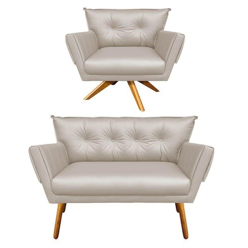 Kit 1 Namoradeira e 1 Poltrona Giratória Corino Bege