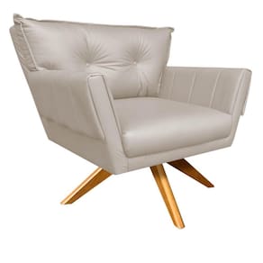 Kit 01 Namoradeira E 01 Poltrona Giratória Anitta Corino Bege Base De Madeira Ma30 Drossi