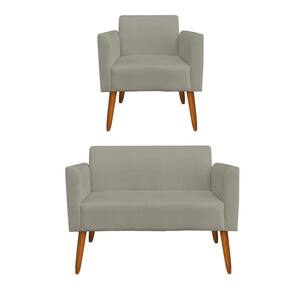 Kit 01 Namoradeira e 01 Poltrona Marisa Suede Marrom Rato Pés Palito Castanho D'Rossi