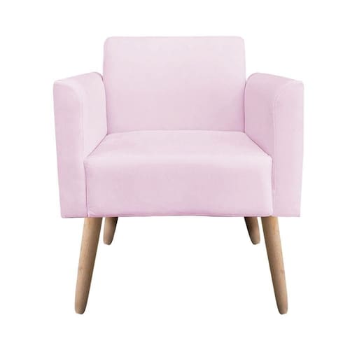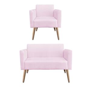 Kit 01 Namoradeira e 01 Poltrona Marisa Suede Rosa Bebê Pés Palito Natural D'Rossi