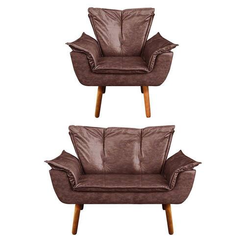 Kit Namoradeira e 01 Poltrona Opala Couro Pés Palito - D'Rossi