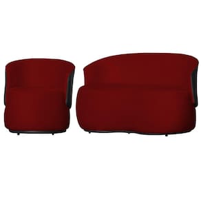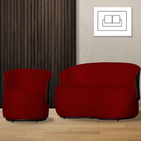 Kit 1 Namoradeira e 1 Poltrona Orgânica Beatriz Suede Composê Corino Preto - Estopar - Vermelho