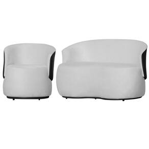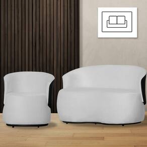 Kit 1 Namoradeira e 1 Poltrona Orgânica Beatriz Suede Composê Corino Preto - Estopar - Branco