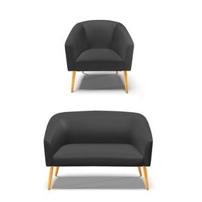 Kit 01 Namoradeira 02 Lugares E 01 Poltrona Stella Corino Pés Palito Castanho - D'rossi Cor Preto