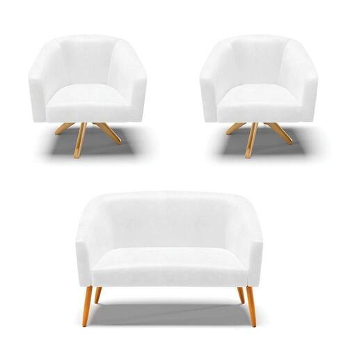 A Namoradeira Stella além de linda vem com um design moderno. Ideal para comportar duas pessoas. Projetada para fornecer segurança, bem-estar e aconchego para quem se assentar. Com um acabamento rico em detalhes, o tecido em Corano no tom Branco, no seu encosto e no assento é composta por espuma mais densa D-23. Os pés são em palito de madeira castanho, tornando o móvel ainda mais resistente. Ela combina com qualquer decoração. Fala aí se não é uma ótima oportunidade!! Escolha seu kit 01 Namoradeira 02 lugares e 02 Poltronas com base giratória de madeira e crie uma decoração romântica, perfeita para casais apaixonados desfrutarem um tempo juntos.