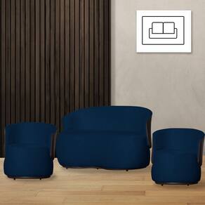 Kit 1 Namoradeira e 2 Poltronas Decorativa Orgânica Beatriz Suede Composê Corino Marrom - Estopar - Azul Marinho