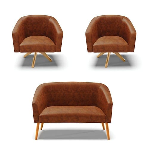 Você irá receber:04 Volumes com 01 Namoradeira, 02 Poltronas e 02 Bases Giratória