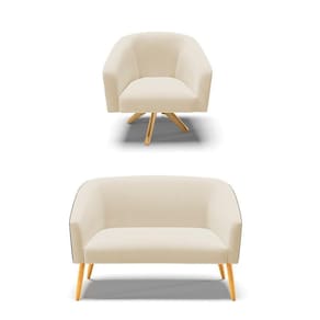 Kit 1 Namoradeira E Poltrona Preto Com Bege A19 Madeira
