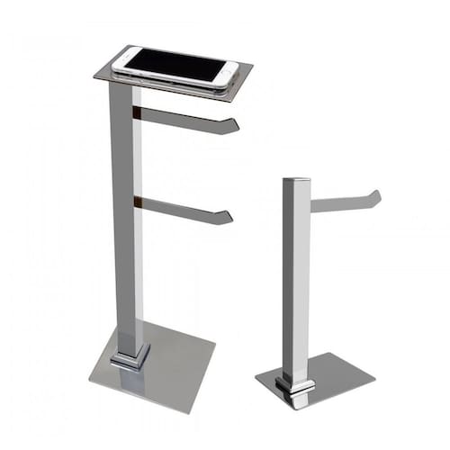 Kit 1 Papeleira de Chão Dupla com Porta Celular e 1 Porta Toalhas de Bancada Ducon Metais Cromado