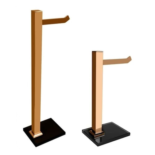 Kit 1 Papeleira de Chão e 1 Porta Toalhas de Bancada com Vidro Ducon Metais Rosé Gold
