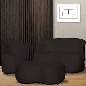 Kit 1 Poltrona 1 Namoradeira e 1 Puff Grande Decorativo Estilo Orgânico Beatriz Suede Composê Corino Preto - Estopar - Marrom