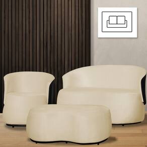 Kit 1 Poltrona 1 Namoradeira e 1 Puff Grande Decorativo Estilo Orgânico Beatriz Suede Composê Corino Preto - Estopar - Bege Claro