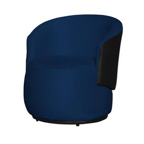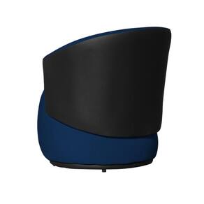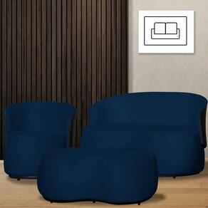 Kit 1 Poltrona 1 Namoradeira e 1 Puff Grande Decorativo Estilo Orgânico Beatriz Suede Composê Corino Preto - Estopar - Azul Marinho