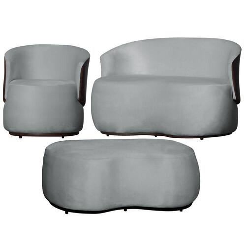 Kit 1 Poltrona 1 Namoradeira e 1 Puff Grande Design Orgânico Beatriz Veludo Composê Corino Marrom - Estopar - Prata