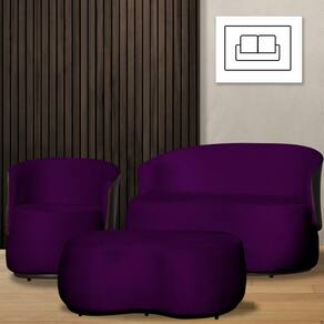 Kit 1 Poltrona 1 Namoradeira e 1 Puff Grande Design Orgânico Beatriz Veludo Composê Corino Marrom - Estopar - Roxo