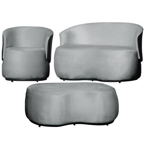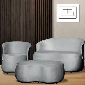 Kit 1 Poltrona 1 Namoradeira e 1 Puff Grande Orgânico Beatriz Veludo Composê Corino Preto - Estopar - Prata