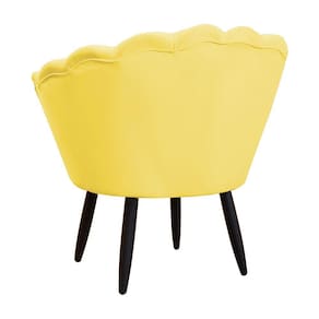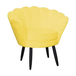 Kit 1 Poltrona Com 1 Puff Pés Palito Salão de Beleza Pétala Suede Amarelo - LM DECOR