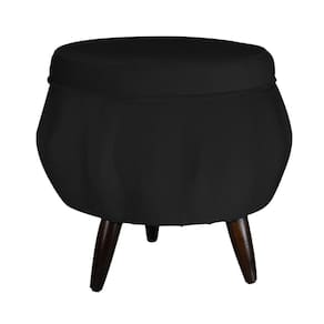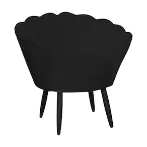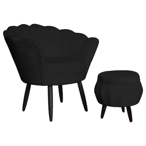 Kit 1 Poltrona Com 1 Puff Pés Palito Salão de Beleza Pétala Suede Preto - LM DECOR