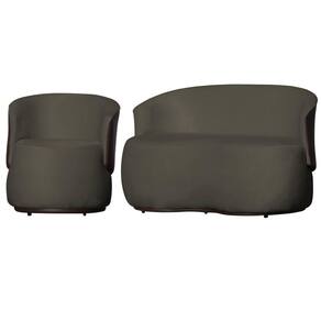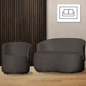 Kit 1 Poltrona e 1 Namoradeira Decorativa Orgânica Beatriz Veludo Composê Corino Marrom - Estopar - Grafite