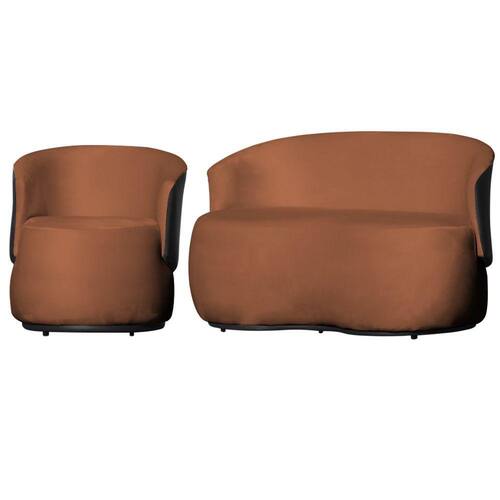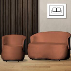 Kit 1 Poltrona e 1 Namoradeira Orgânica Beatriz Veludo Composê Corino Preto - Estopar - Laranja