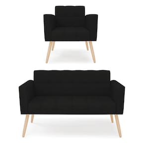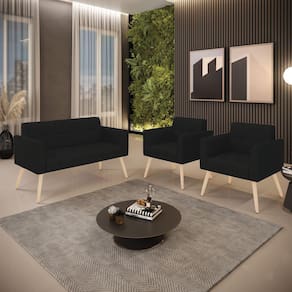 Você gosta de colecionar vários momentos memoráveis com sua família e amigos? Que tal recebê-los, com móveis de altíssima qualidade que só a D'Rossi tem? O Kit 01 Namoradeira e 01 Poltrona Elisa é adequado para você! Seu design retrô é a grande tendência do momento. Pode ser utilizado em diversos espaços da casa, em salas, hall de entrada, quartos, cozinhas, varanda, sacada, escritório, dentre outros. Contém as seguintes características: A estrutura é feita de madeira de Eucalipto 100% de reflorestamento, e os Pés Palito Natural, além de serem resistentes e duráveis, suportam em média até 120 kg. Assento, encosto e braços, contém enchimento de espuma D-23 e é estofado em tecido Linho, no tom Preto, que oferece muito conforto e resistência ao sentar, com aquela sensação de maciez e aconchego. Possui também, detalhes de costura no encosto e assento, resultando em um acabamento impecável, conferindo muito mais valor e elegância ao seu espaço. Para complementar a decoração com esse lindo kit, a dica é utilizar mantas, almofadas ou vasinho de flor. E pronto, seu cantinho estará perfeito para descansar e relaxar! Aqui, você encontra várias opções, para que seus amigos e familiares se sintam acolhidos. Garanta já seu kit.