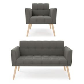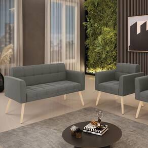 Você gosta de colecionar vários momentos memoráveis com sua família e amigos? Que tal recebê-los, com móveis de altíssima qualidade que só a DRossi tem? O Kit 01 Namoradeira e 01 Poltrona Elisa é adequado para você! Seu design retrô é a grande tendência do momento. Pode ser em diversos espaços da casa, em salas, hall de entrada, quartos, cozinhas, varanda, sacada, escritório, dentre outros. Contém as seguintes características: A estrutura é feita de madeira de Eucalipto 100% de reflorestamento, e os Pés Palito , além de serem resistentes e duráveis, suportam em média até 120 kg. Assento, encosto e braços, contém enchimento de espuma D-23 e é estofado em tecido Suede, no tom Grafite, que oferece muito conforto e resistência ao sentar, com aquela sensação de maciez e aconchego. Possui também, detalhes de costura no encosto e assento, resultando em um acabamento impecável, conferindo muito mais valor e elegância ao seu espaço. Para complementar a decoração com esse lindo kit, a dica é utilizar mantas, almofadas ou vasinho de flor. E pronto, seu cantinho estará perfeito para descansar e relaxar! Aqui, você encontra várias opções, para que seus amigos e familiares se sintam acolhidos. Garanta já seu kit.