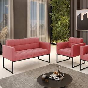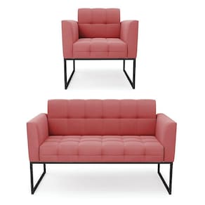 Você gosta de colecionar vários momentos memoráveis com sua família e amigos? Que tal recebê-los, com móveis de altíssima qualidade que só a DRossi tem? O Kit 01 Namoradeira e 01 Poltrona Elisa é adequado para você! Seu design retrô é a grande tendência do momento. Pode ser utilizado em diversos espaços da casa, em salas, hall de entrada, quartos, cozinhas, varanda, sacada, escritório, dentre outros. Contém as seguintes características: A estrutura é feita de madeira de Eucalipto 100% de reflorestamento, e a Base Industrial Metálica Preto, além de ser resistente e durável, suporta em média até 120 kg. Assento, encosto e braços, contém enchimento de espuma D-23 e é estofado em tecido Suede, no tom Rosê, que oferece muito conforto e resistência ao sentar, com aquela sensação de maciez e aconchego. Possui também, detalhes de costura no encosto e assento, resultando em um acabamento impecável, conferindo muito mais valor e elegância ao seu espaço. Para complementar a decoração com esse lindo kit, a dica é utilizar mantas, almofadas ou vasinho de flor. E pronto, seu cantinho estará perfeito para descansar e relaxar! Aqui, você encontra várias opções, para que seus amigos e familiares se sintam acolhidos. Garanta já seu kit.
